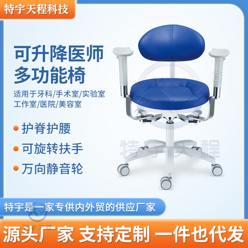 Kursi dokter bedah yang dapat disesuaikan dengan sandaran tangan ganda, kursi klinik gigi, kursi ergonomis, kursi putar.