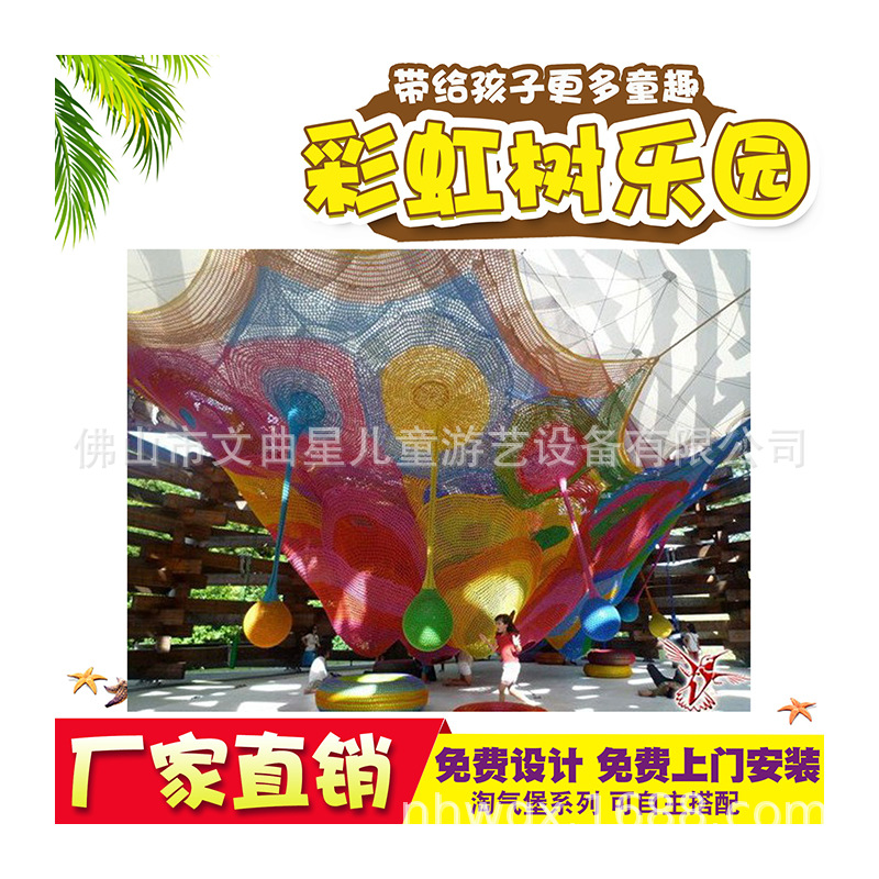 Jaring memanjat anak-anak, jaring bor pohon pelangi latihan dalam ruangan dan luar ruangan, jaring tali kastil nakal ekspansi tebal