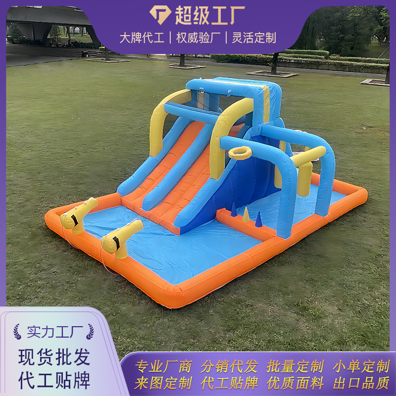 Melompat di dua geser bermain air istana tiup dalam ruangan anak-anak kecil trampolin rumah nakal istana bermain kolam