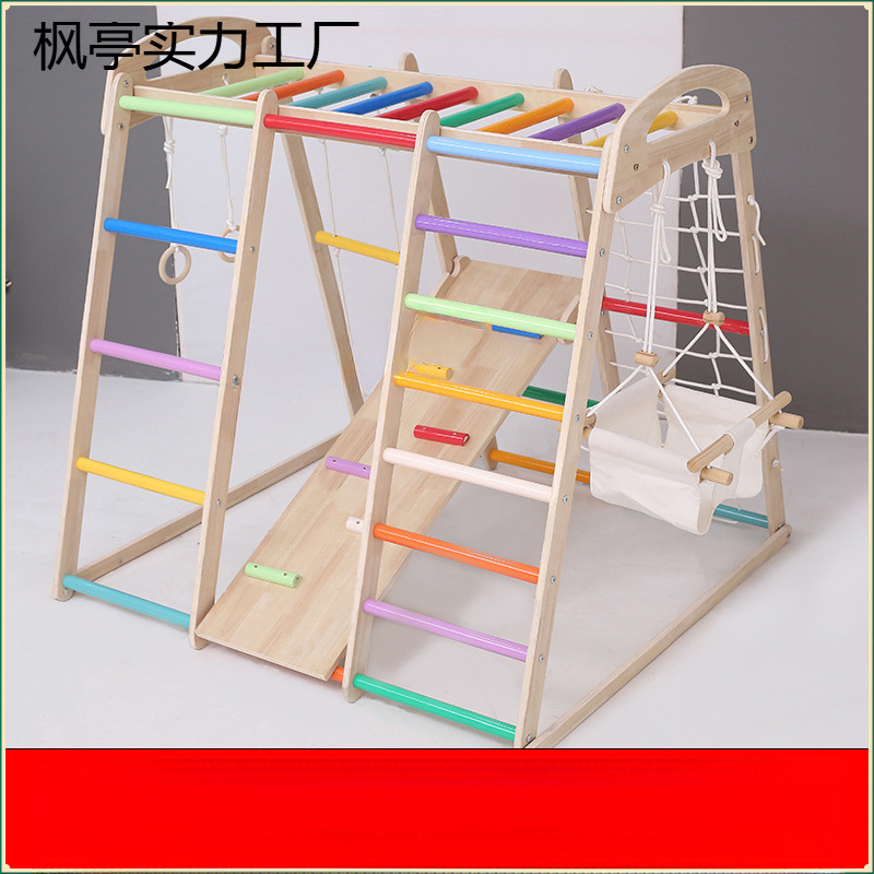 Rak Pendakian Anak-Anak Kayu Solid Dalam Ruangan Rumah Tangga Kecil Taman Keluarga Bayi Panjat Tebing Slide Kombinasi Ayunan Benteng Nakal
