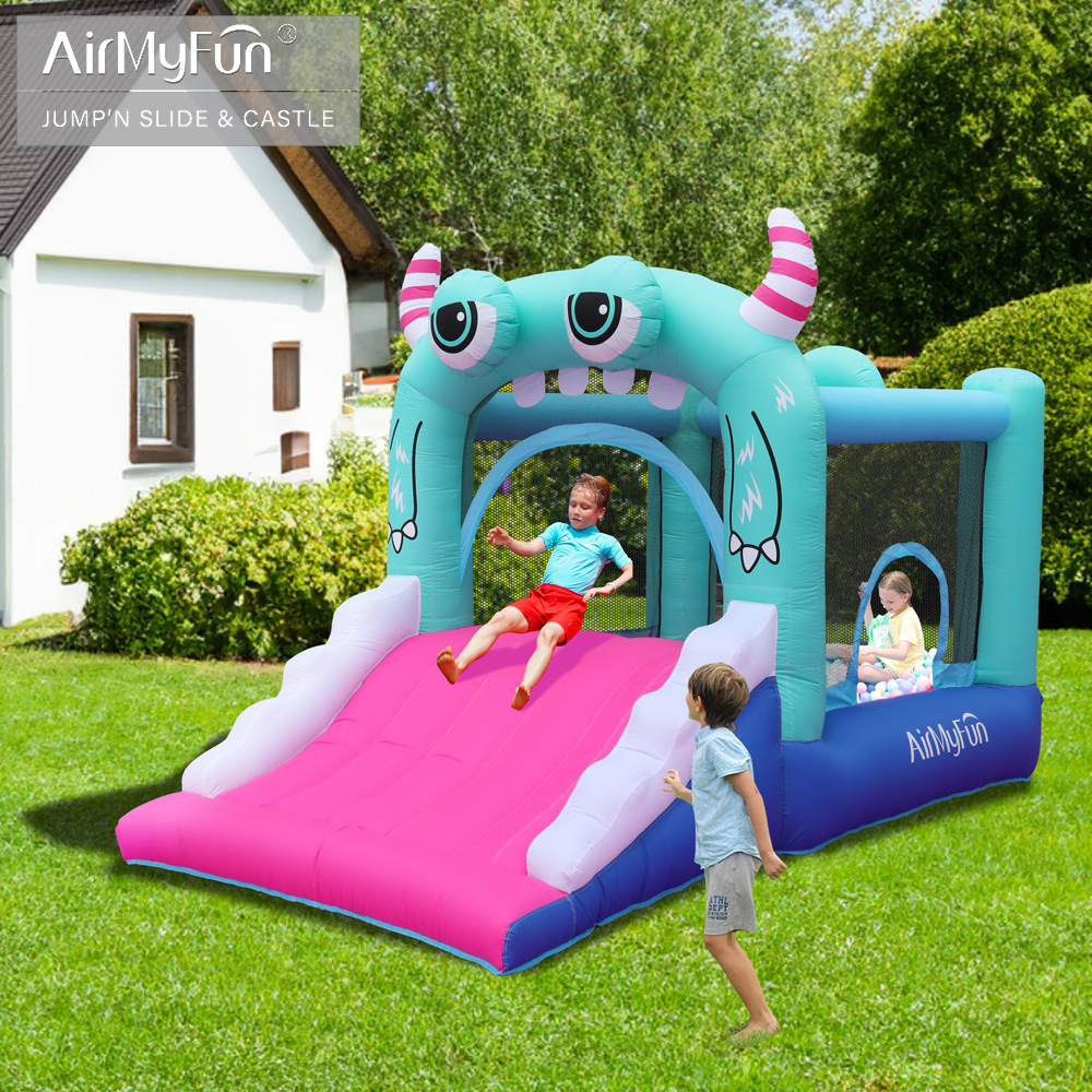 AirMyFun monster kecil anak-anak, Ranjang lompat tiup kecil untuk rumah tangga, istana tiup kecil, kain Oxford, peluncuran tiup untuk anak-anak