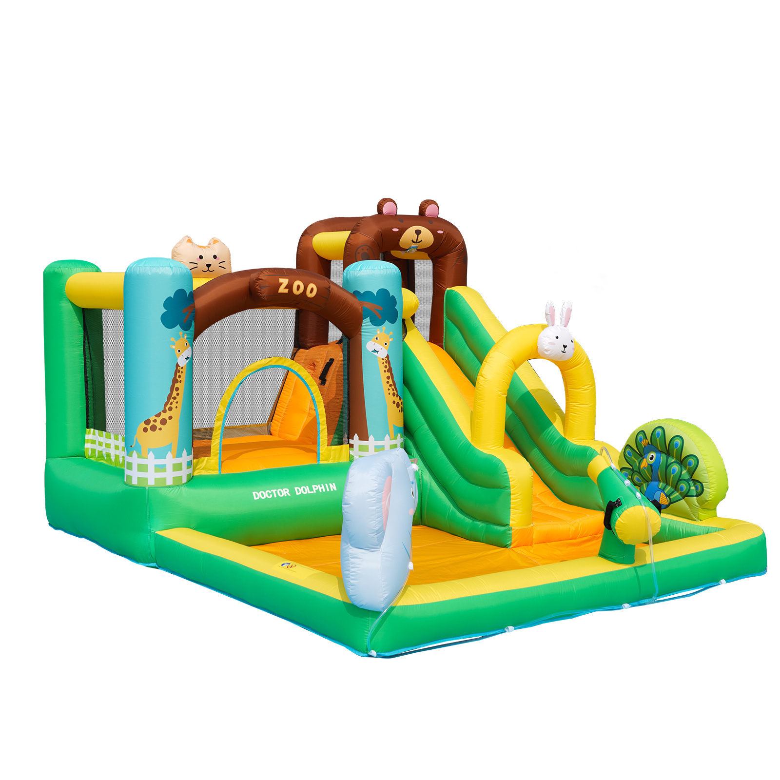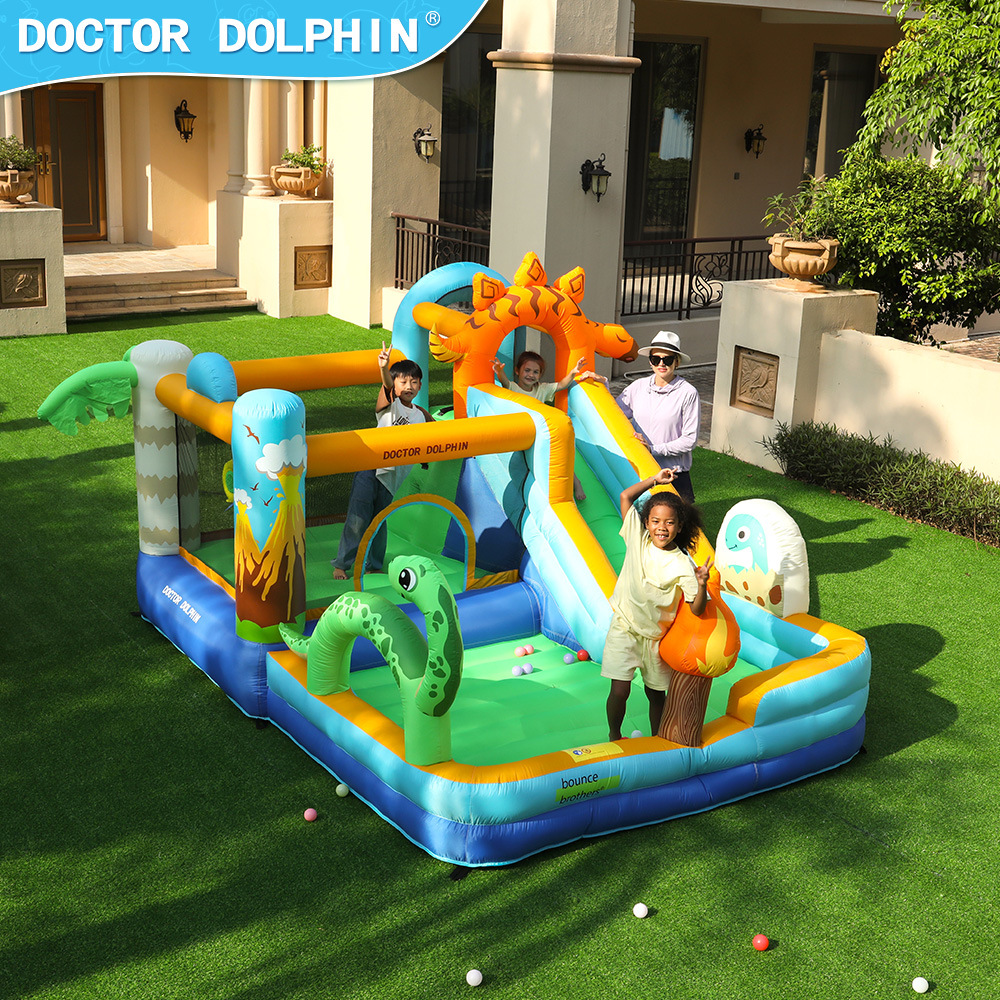 Doctor Dolphin seluncuran tiup trampolin baru, dalam dan luar ruangan istana tiup geser hewan tema taman anak-anak