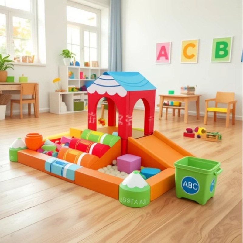 Tas lembut Taman kanak-kanak kolam bola krayon, pusat pendidikan dini Mainan kombinasi lembut anak-anak memanjat dan geser kolam bola krayon sensor