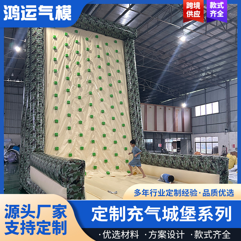 Dinding panjat tiup besar di luar ruangan berdiri untuk bermain