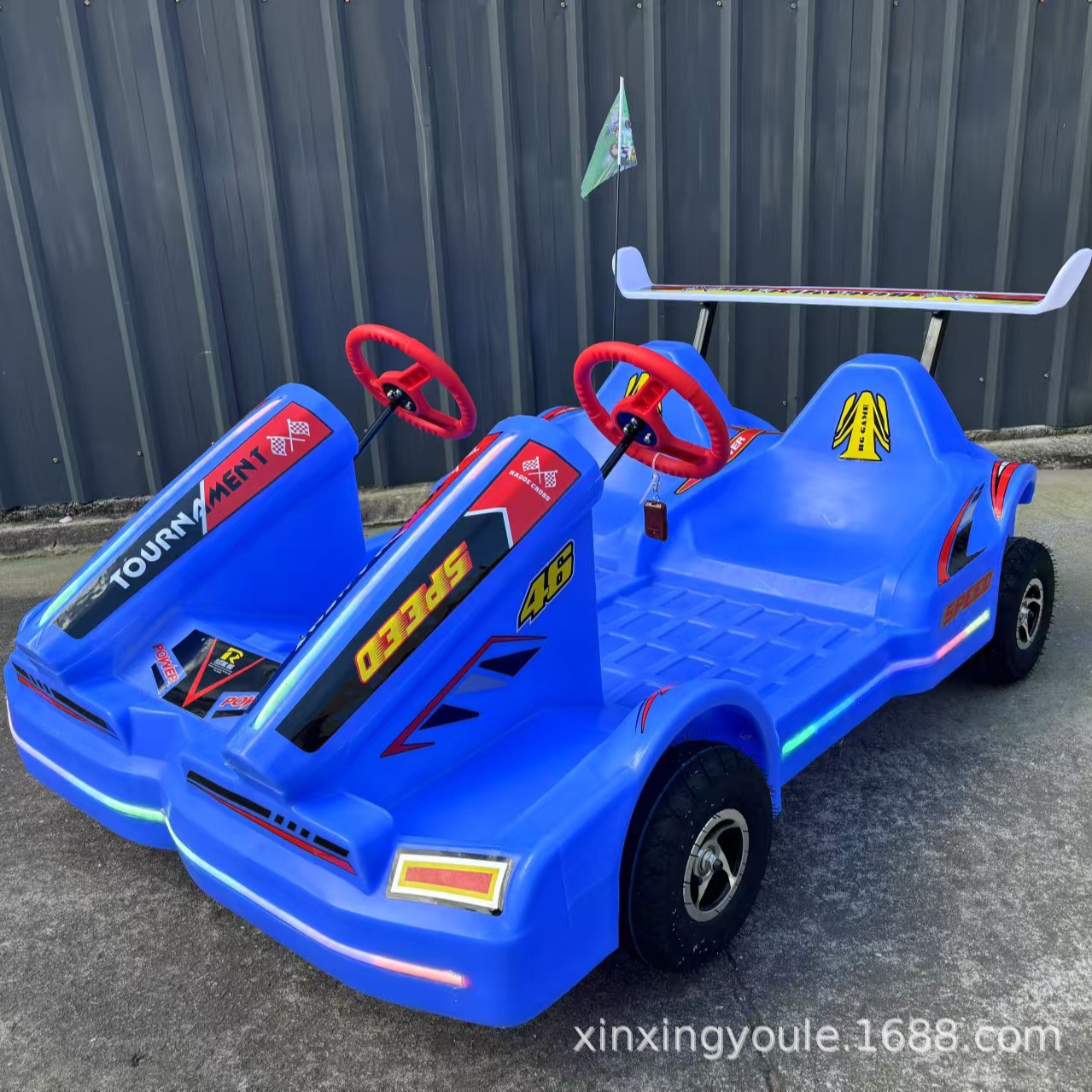 Mobil Hiburan Bercahaya Persegi Mobil Bemper Anak-Anak Sepeda Roda Tiga Orang Tua dan Anak-Anak Model Baru Outdoor Stand Karting Dua Orang Komersial