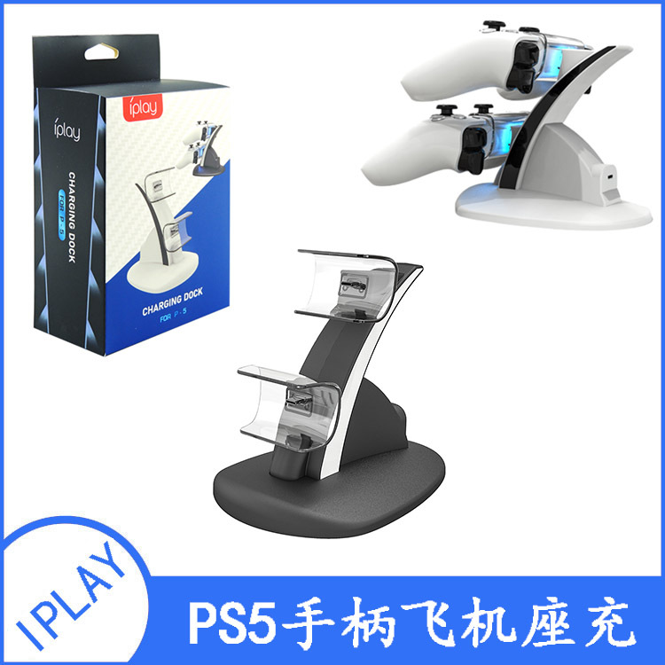 PS5无线手柄双座充PS5飞机充带蓝光指示灯PS5游戏手柄座充充电器