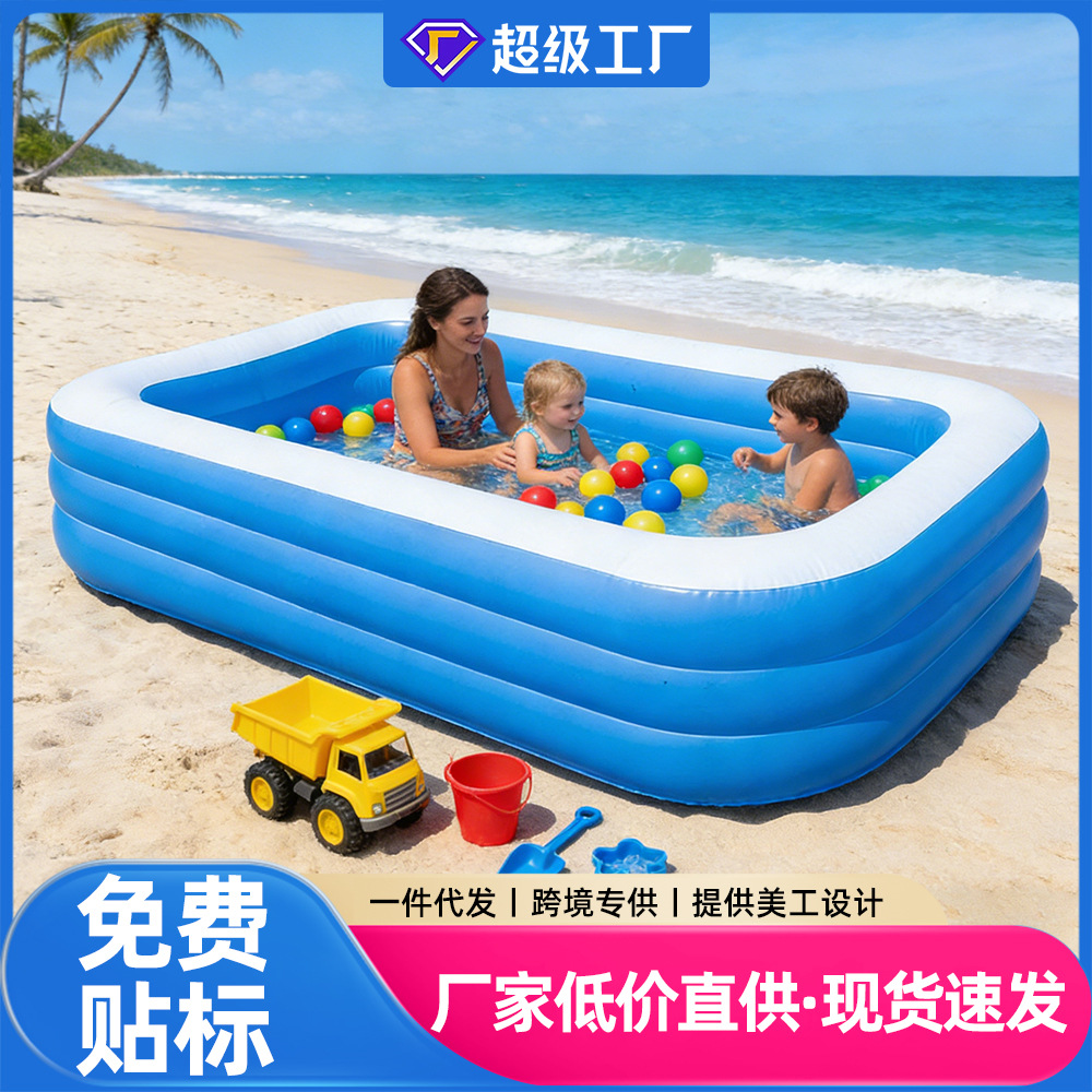 Hot cross-border grosir kolam renang Tiga Cincin otomatis kolam renang tiup kolam mainan anak-anak ember mandi bayi grosir