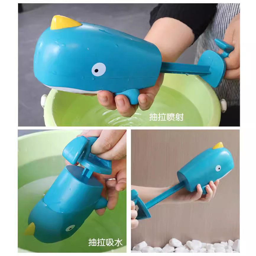Pistol air anak-anak, pistol air pull-out mainan mandi kolam renang bermain air hiu bayi kartun pistol air