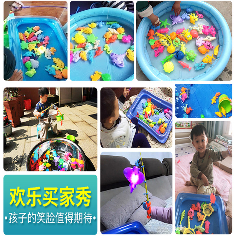 Mainan memancing anak, magnetik ikan bayi kolam renang magnet bercahaya induksi mainan kolam bermain ikan