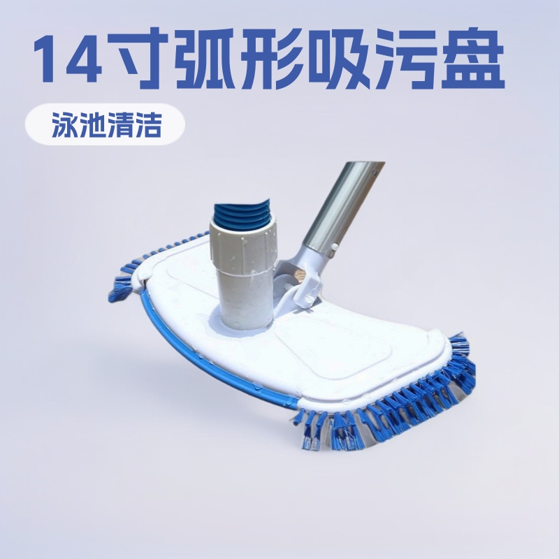 Kepala penyedot lengkung untuk kolam renang, alat pembersih kolam renang 14 inci dengan sikat, alat pembersih dasar kolam renang, alat pembersih garis jalur kolam renang.