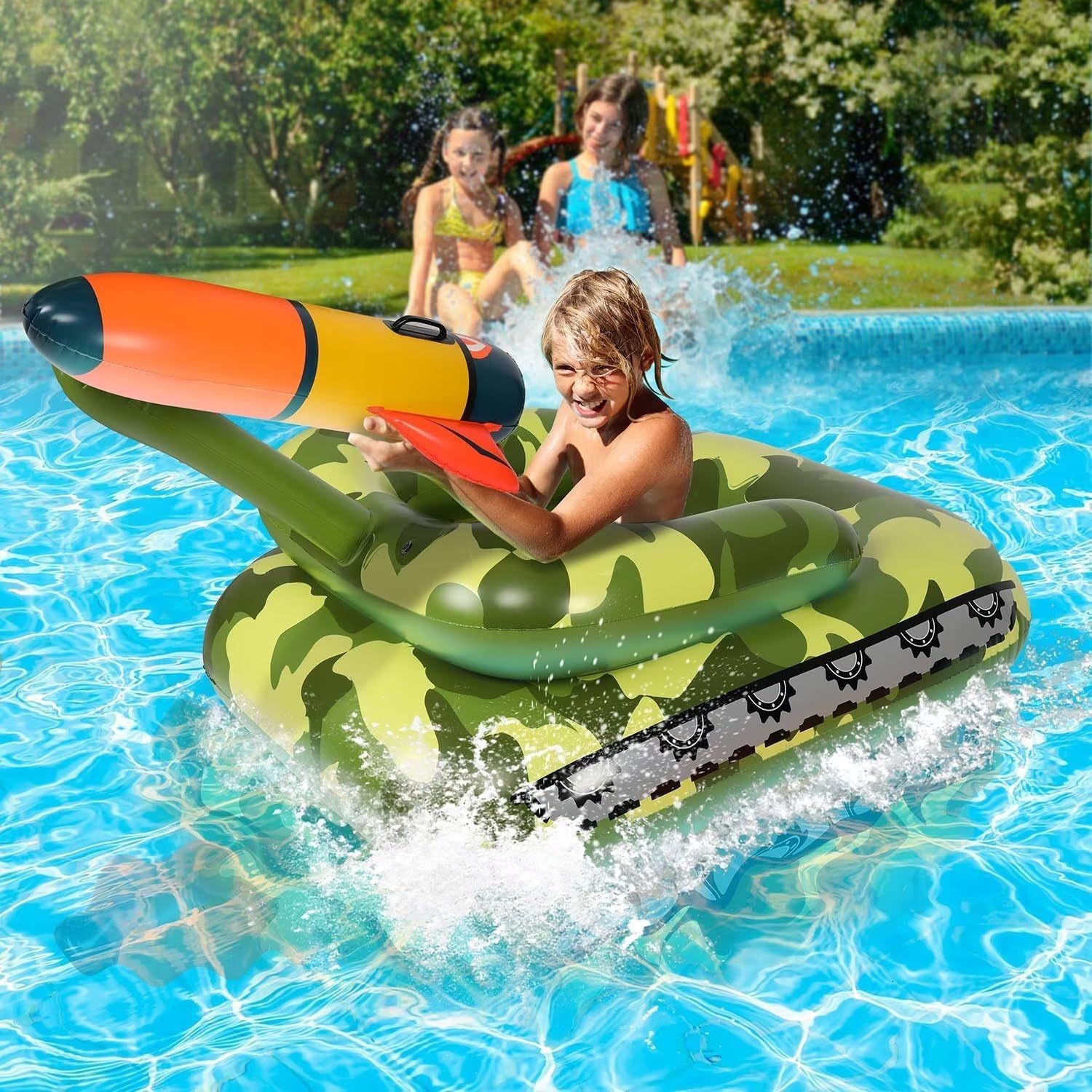 Pasokan lintas batas tangki semprotan air tiup dengan pistol air kolam renang anak-anak bermain kereta air semprotan air kursi cincin renang
