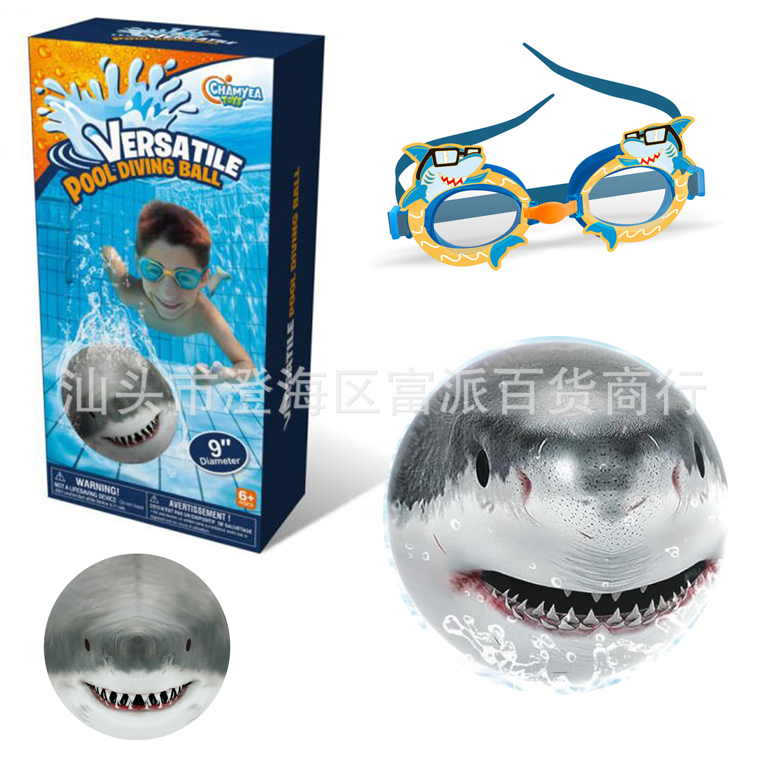 Setelan kacamata renang PVC tiup anak-anak, lintas batas kolam renang bola menyelam permainan air hiu