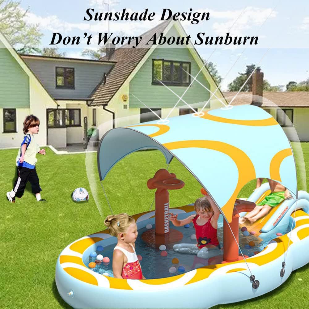 Kolam renang tiup anak-anak lintas batas kolam renang bayi dengan perosotan, penyiram, kait basket, tenda,