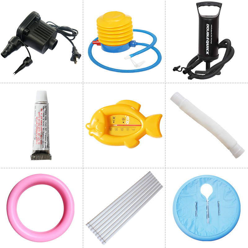 Aksesori mainan tiup kolam renang, pompa kaki elektrik multifungsi ganda pompa tangan kartu suhu air lem perbaikan braket ember mandi