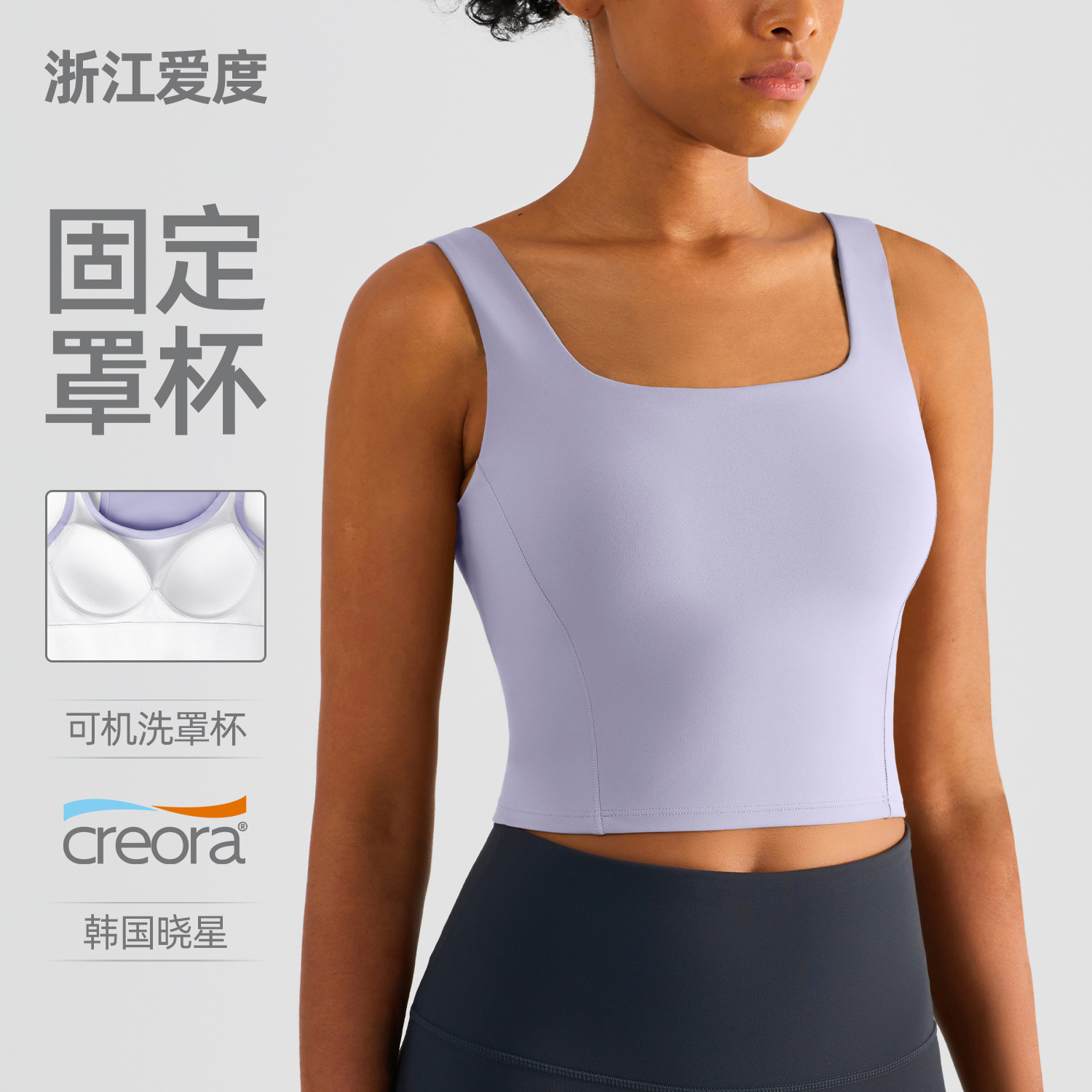 Ningbo pohon besar kerah persegi pakaian dalam olahraga tahan benturan pakaian luar wanita dengan bantalan dada atasan kebugaran berlari yoga kecantikan rompi belakang