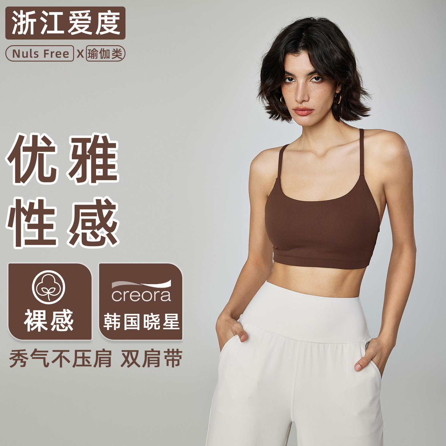 NULS bra yoga halter nude, pakaian dalam segitiga wanita, rompi olahraga punggung cantik, pakaian dalam olahraga yoga push up