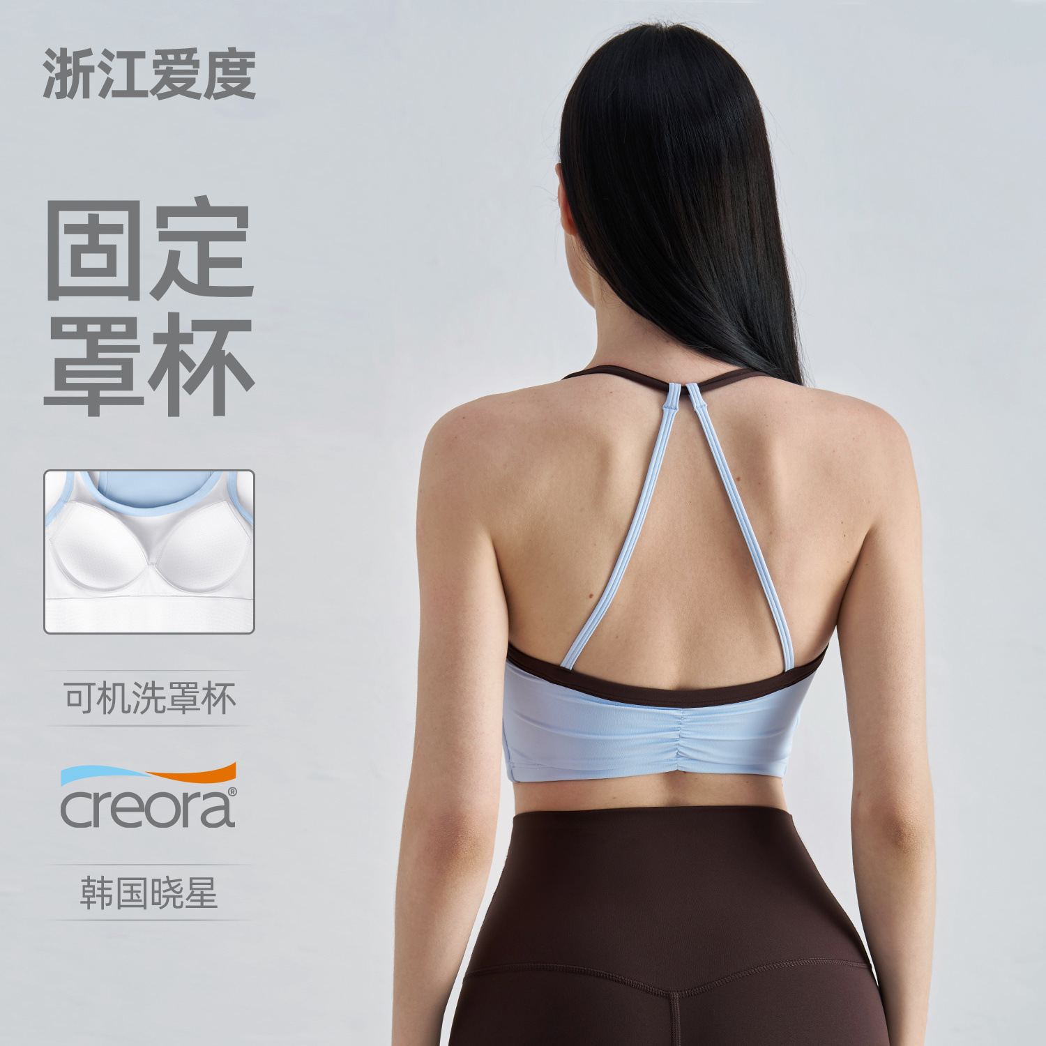NU青春性感美背吊带运动内衣女带胸垫聚拢瑜伽背心防下垂健身文胸
