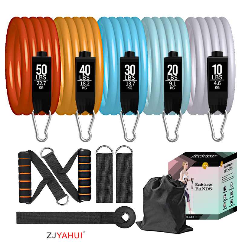 TPE11 set tali regang, tali elastis kebugaran tekanan perangkat 100 pon 150 pon setelan pita resistensi