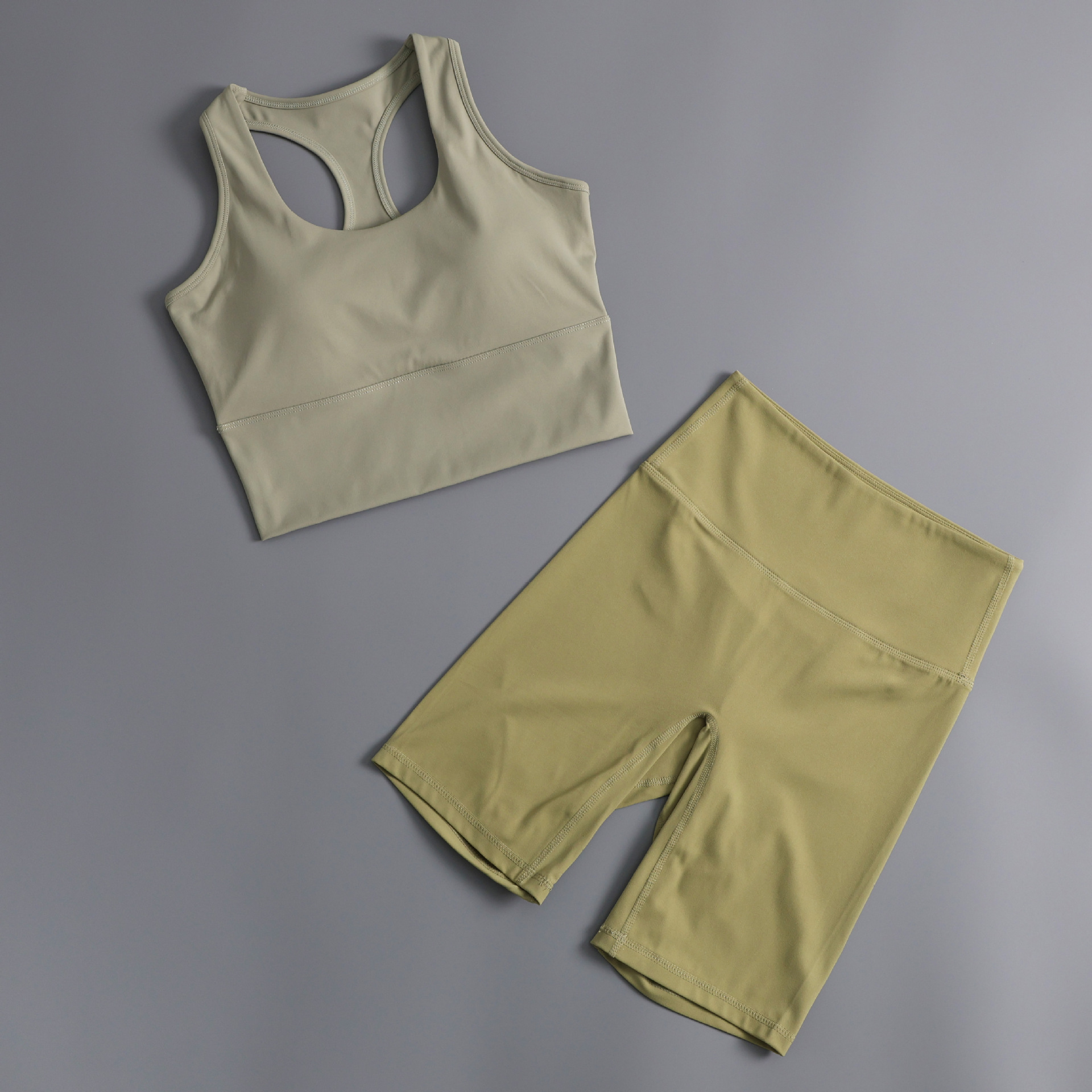Pakaian Dalam Olahraga Satu Badan Huruf I Berkumpul Tahan Guncangan Berkekuatan Tinggi Setelan Wanita Celana Pendek Yoga Berlari Musim Panas