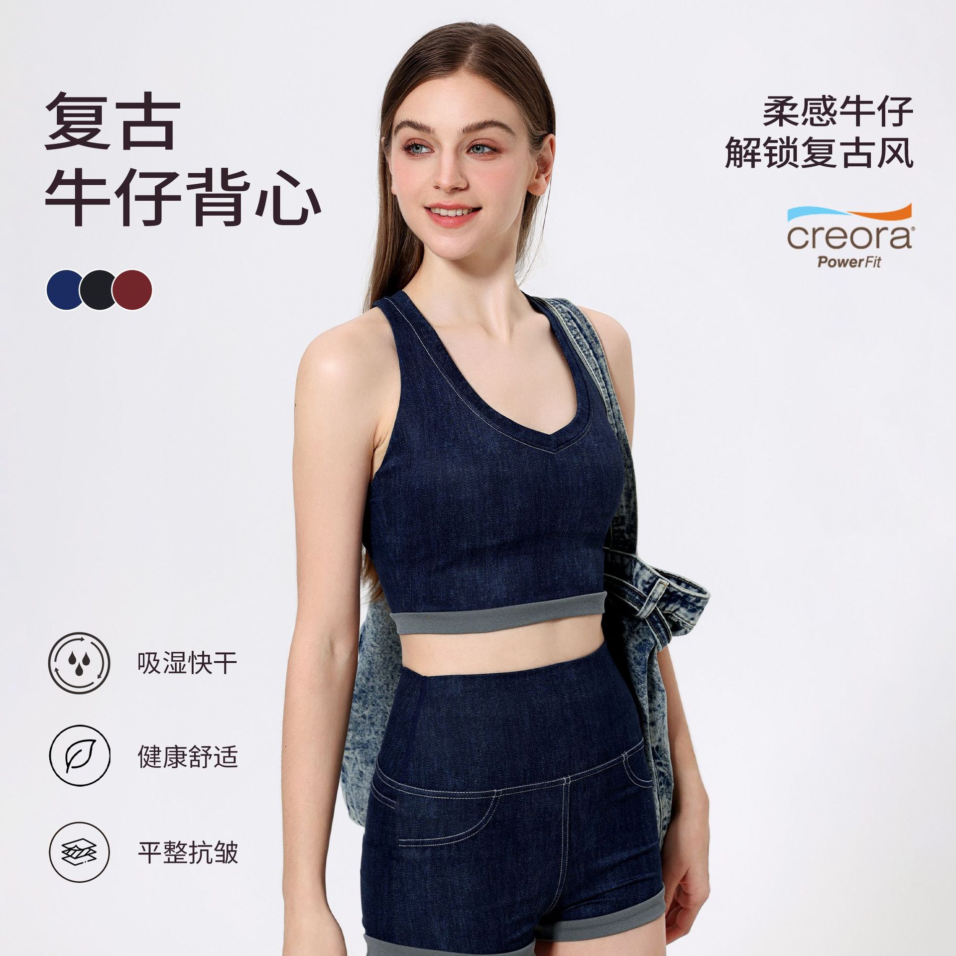 梵心仿牛仔运动内衣女跑步美背普拉提文胸健身bra外穿背心瑜伽服