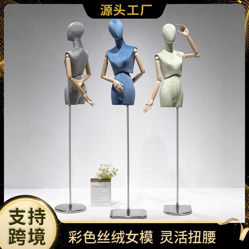 Alat Peraga Model Pinggang Terbalik Warna Beludru Toko Pakaian Wanita Jendela Toko Pakaian Model Setengah Tubuh Model Rak Display Seluruh Tubuh