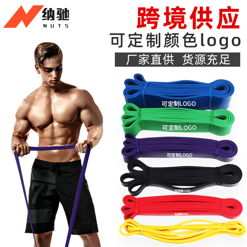 Pita karet Kebugaran Pria Wanita, tali resistensi kekuatan latihan yoga, pita karet datar, cincin tambahan pull-up