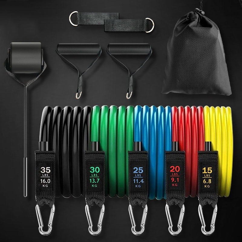 Penarik TPE 11 potong elastis untuk latihan otot rumah/150 pon tali elastis kebugaran grosir