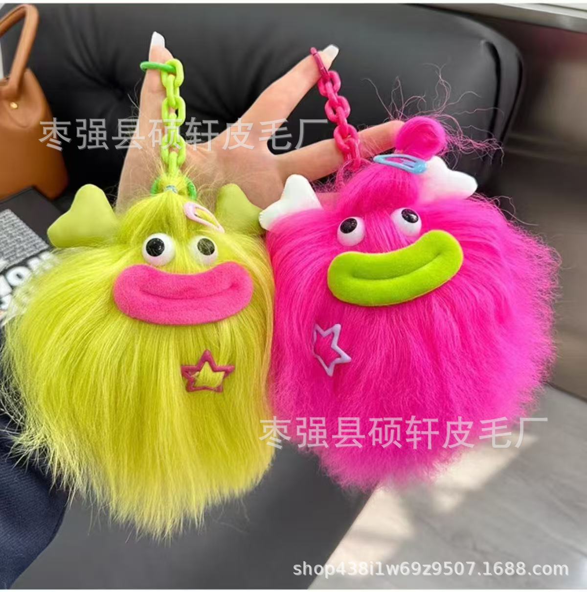 Dudu Bibir DIY Rambut Panjang Gantungan Kunci Boneka Kartun Lucu Lucu Gantungan Mobil Liontin Tas Boneka Mewah Ornamen