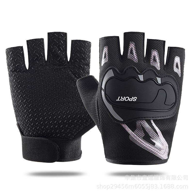 Sarung tangan olahraga dumbbell, peralatan latihan anti selip bernapas fitness berkendara mendaki setengah jari perlindungan pergelangan tangan anti-kepompong