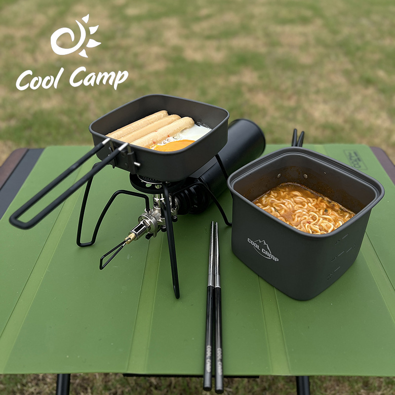 Panci Persegi Berkemah Luar Ruangan Lipat Kotak Makan Siang Paduan Aluminium Portabel Goreng Panci Rebus Panci Makan Gunung Panci