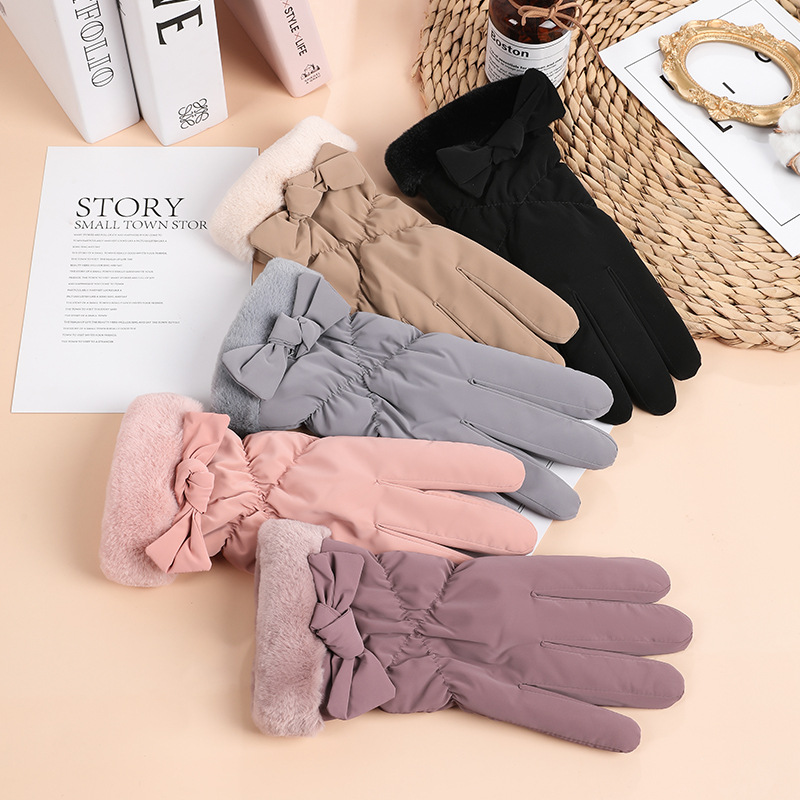 加绒加厚保暖手套冬季户外骑行防寒防水手套女士可触屏防雨绸手套