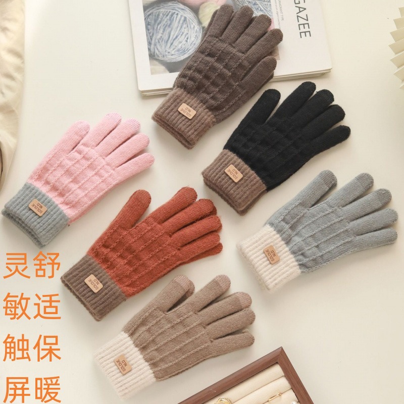 冬季新款毛绒弹力针织手套女生运动户外防寒触屏学生骑行保暖手套