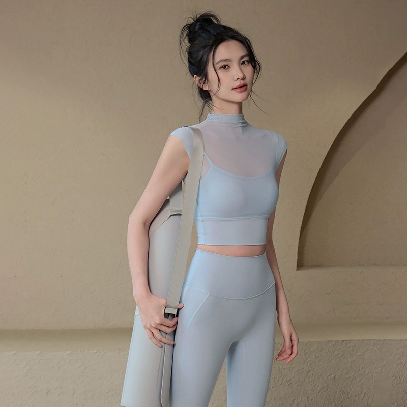 Celana Yoga Wanita Model Pinggang Tinggi Mengangkat Pinggang Musim Semi dan Musim Panas Palsu Dua Potong Set Latihan Olahraga Kebugaran Lari Celana Panjang Profesional Bersepeda