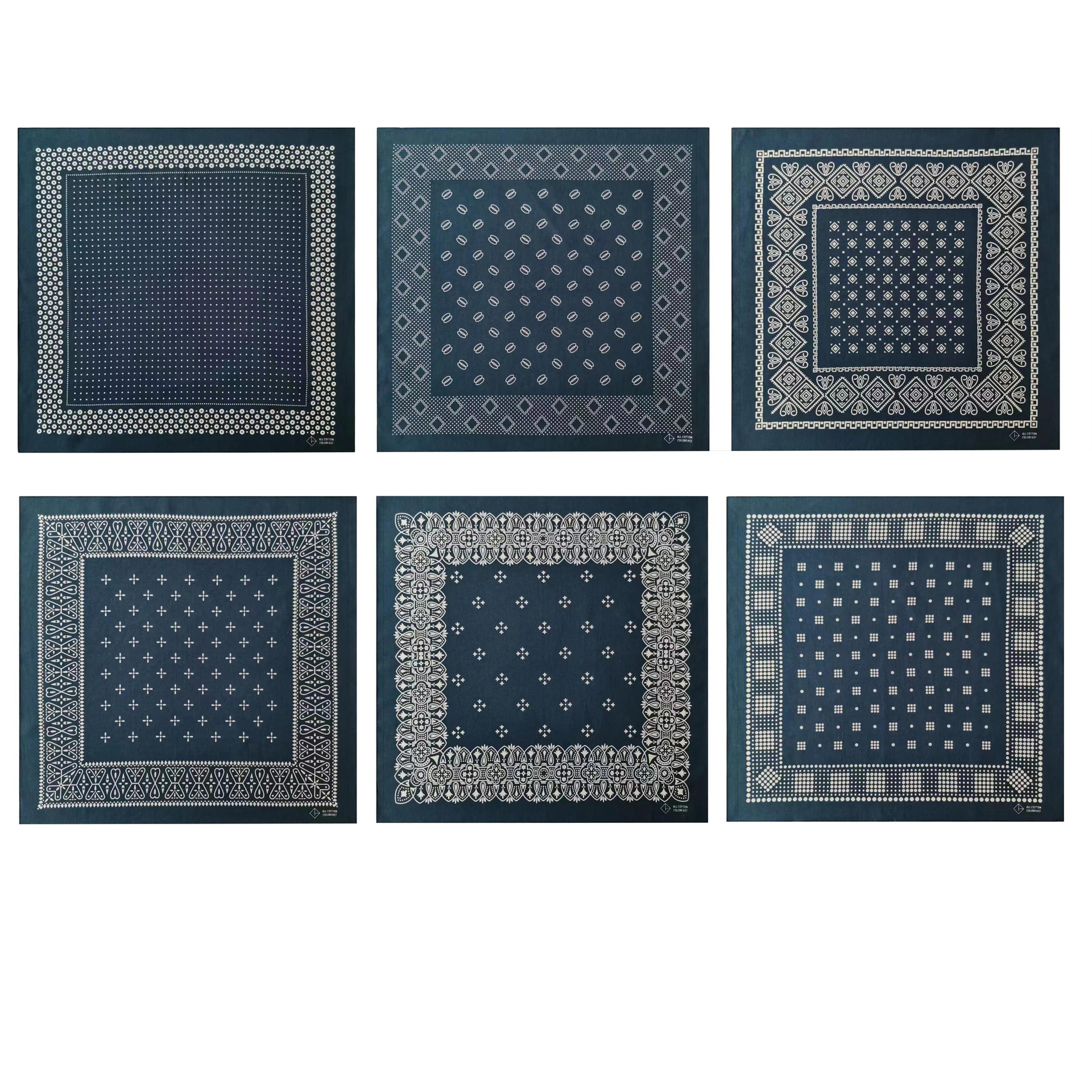 Bandana katun jilbab syal persegi banyak pola hitam biru syal santai luar ruangan berkendara handuk wajah gaun hip hop