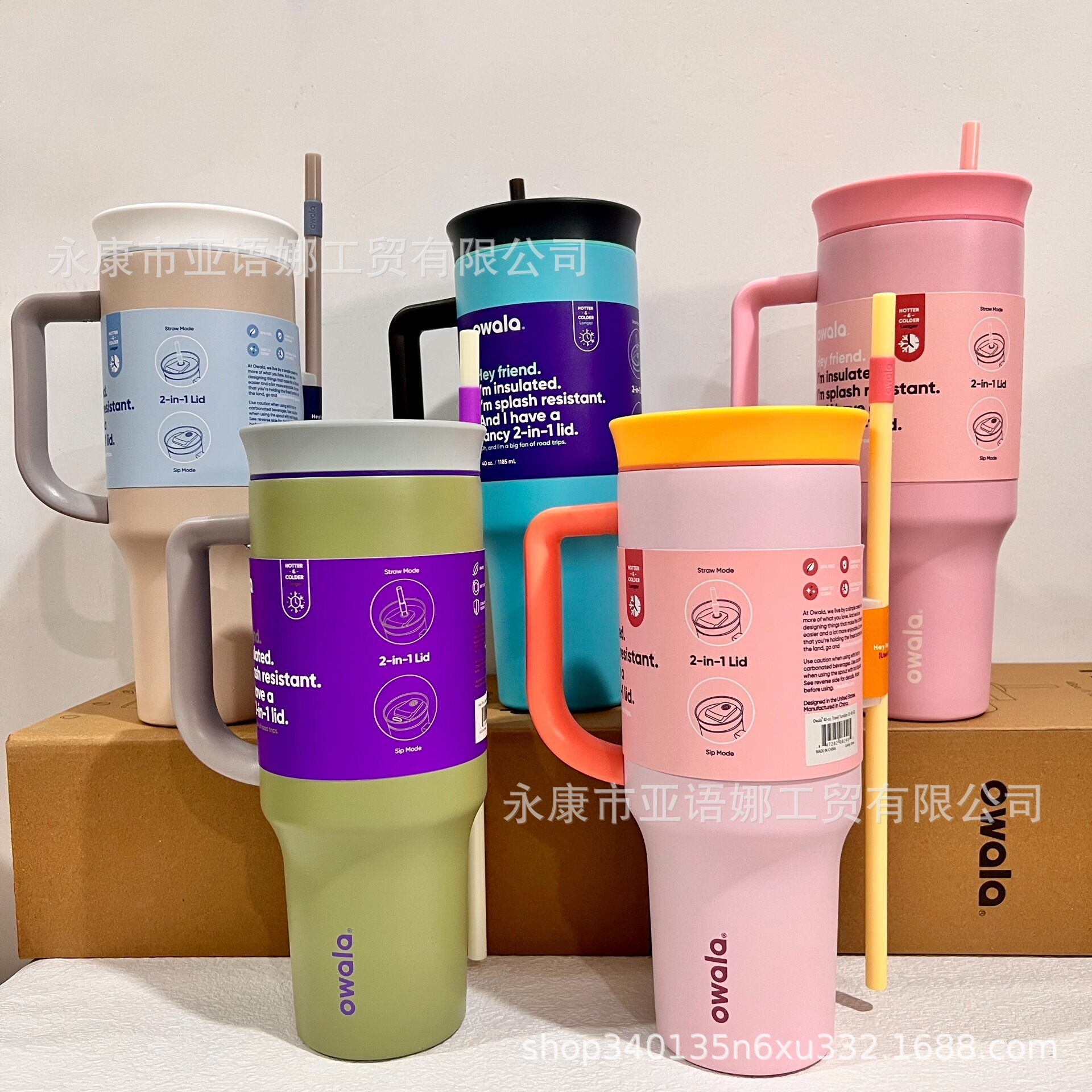 新款Owala双层真空保温杯40oz汽车杯 户外运动健身车载冷热吸管水