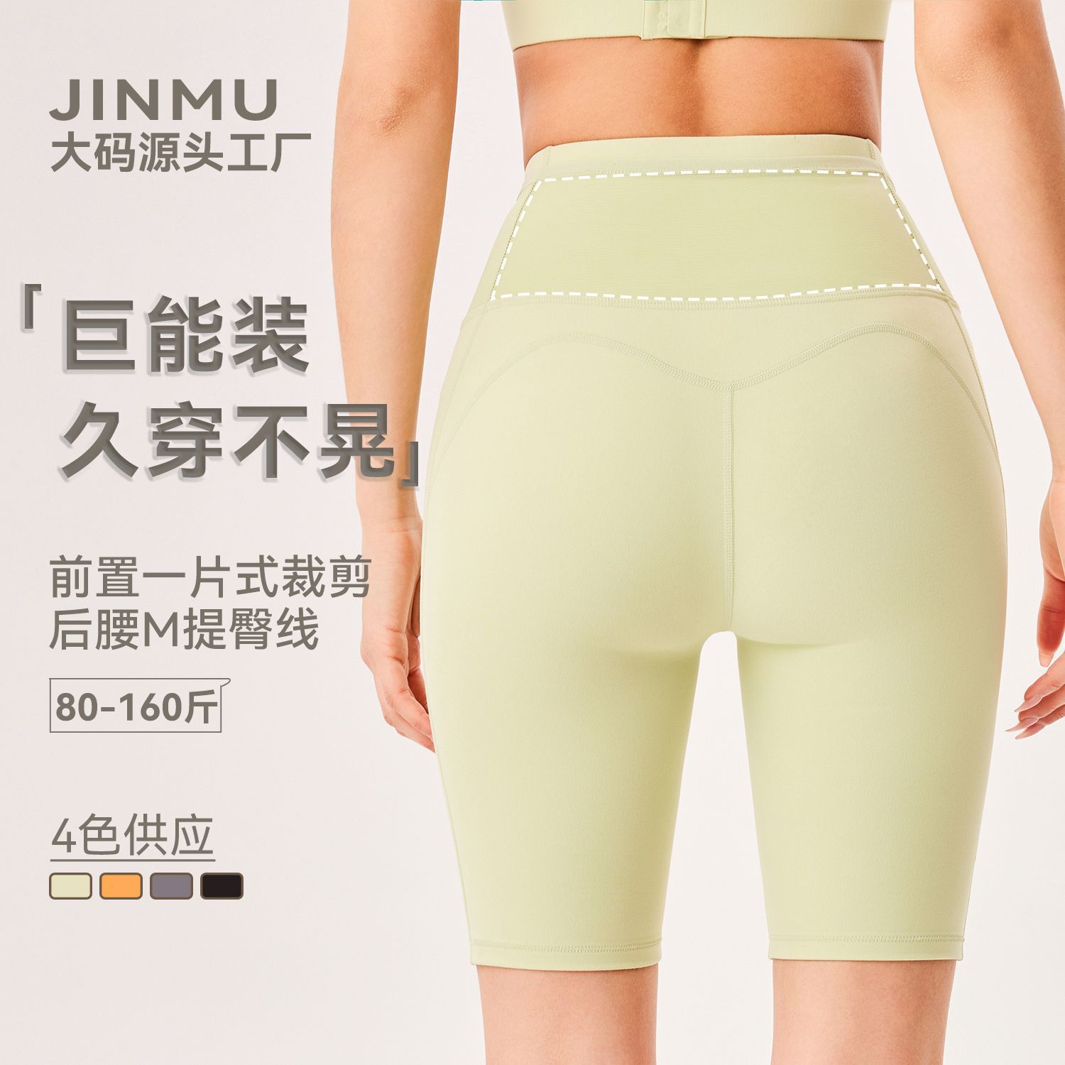 新款健身裤高腰提臀祼感免穿内裤运动五分裤跑步骑行紧身瑜伽短裤