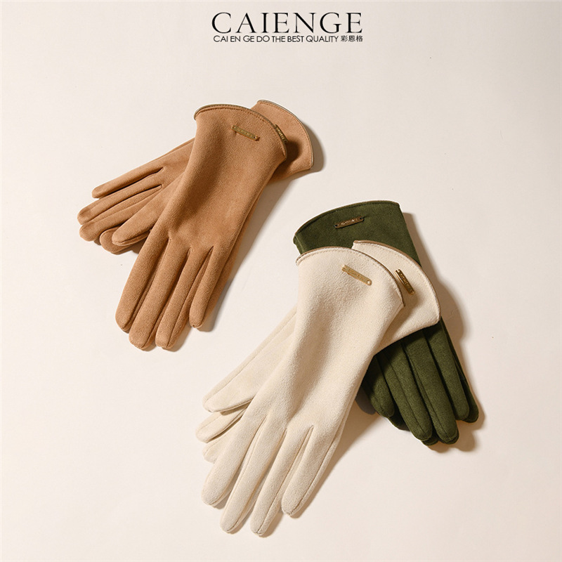 日本手套冬季女加绒加厚骑行开车触屏麂皮绒保暖防寒手套冬天跨境