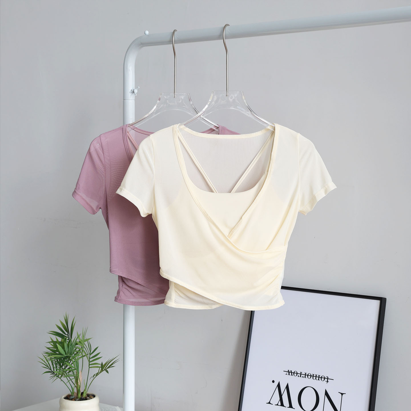普拉提运动健身短袖上衣带胸垫瑜伽服高级感运动健身骑行训练服女