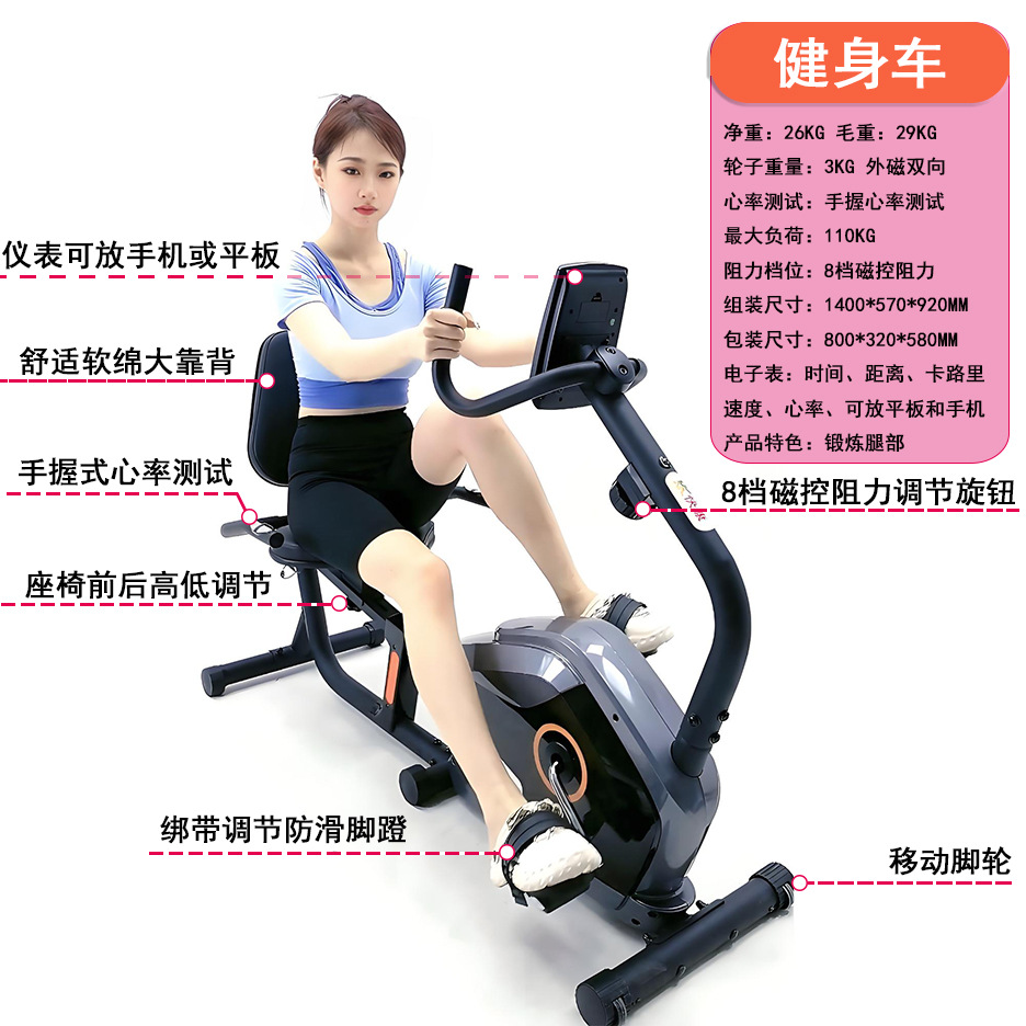 Sepeda latihan horizontal rumah tangga, mobil usia sedang dan orang tua, peralatan olahraga dalam ruangan sepeda kuaikang sumber pabrik