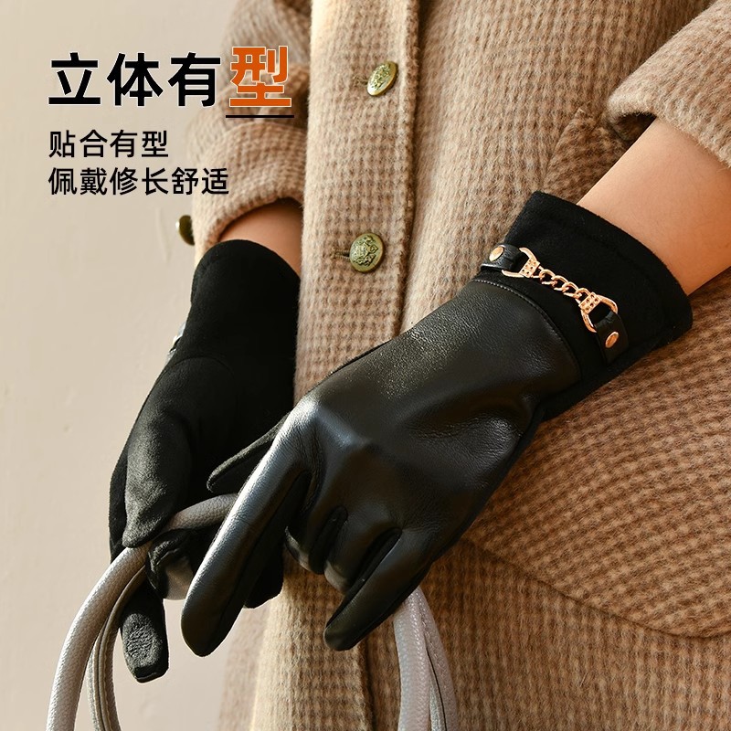Sarung tangan bulu domba wanita, sarung tangan wanita bulu tebal hangat luar ruangan bersepeda ski tahan dingin layar sentuh mewah