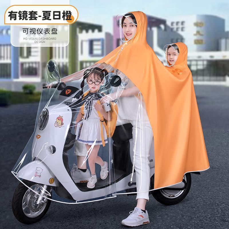 Jas hujan mobil listrik satu ganda wanita, ponco berkendara luar ruangan transparan tahan hujan tebal orangtua-anak