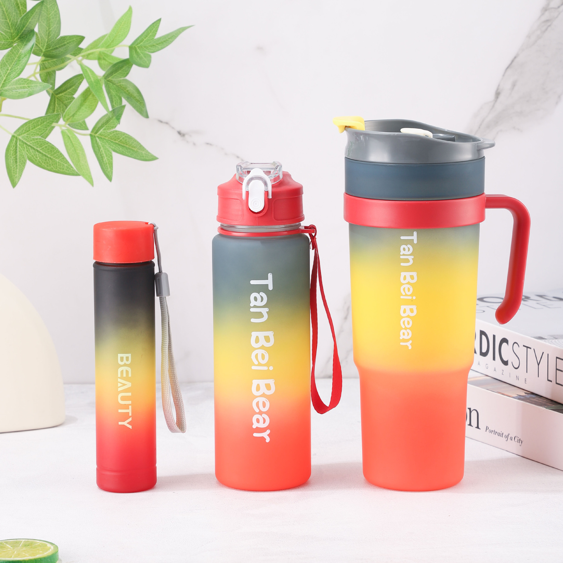 Cangkir Plastik Lintas Batas 3 Set Cangkir Air Sedotan Kapasitas Besar Matte Portabel Cangkir Mobil Portabel Olahraga Kebugaran Luar Ruangan