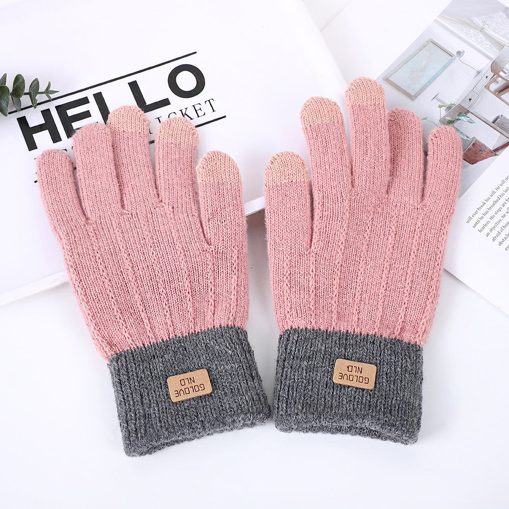 秋冬季鹿毛绒韩版户外休闲骑行加厚加绒防寒保暖针织提花触屏手套