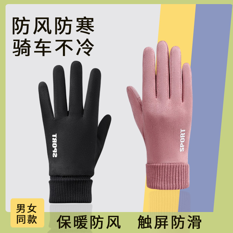 2024爆款麂皮绒手套男女冬季加绒加厚保暖触屏棉骑车开车骑行户外