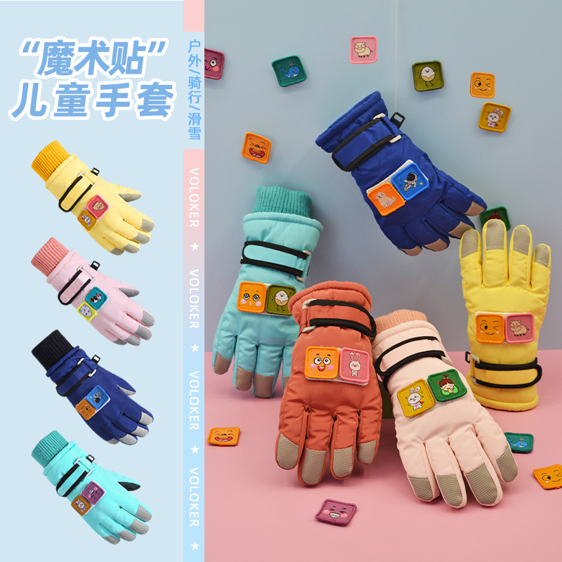 Sarung tangan ski anak-anak, sarung tangan musim dingin anak-anak, sarung tangan Main salju bulu domba hangat, sarung tangan anak lima jari tahan air, sarung tangan lintas batas