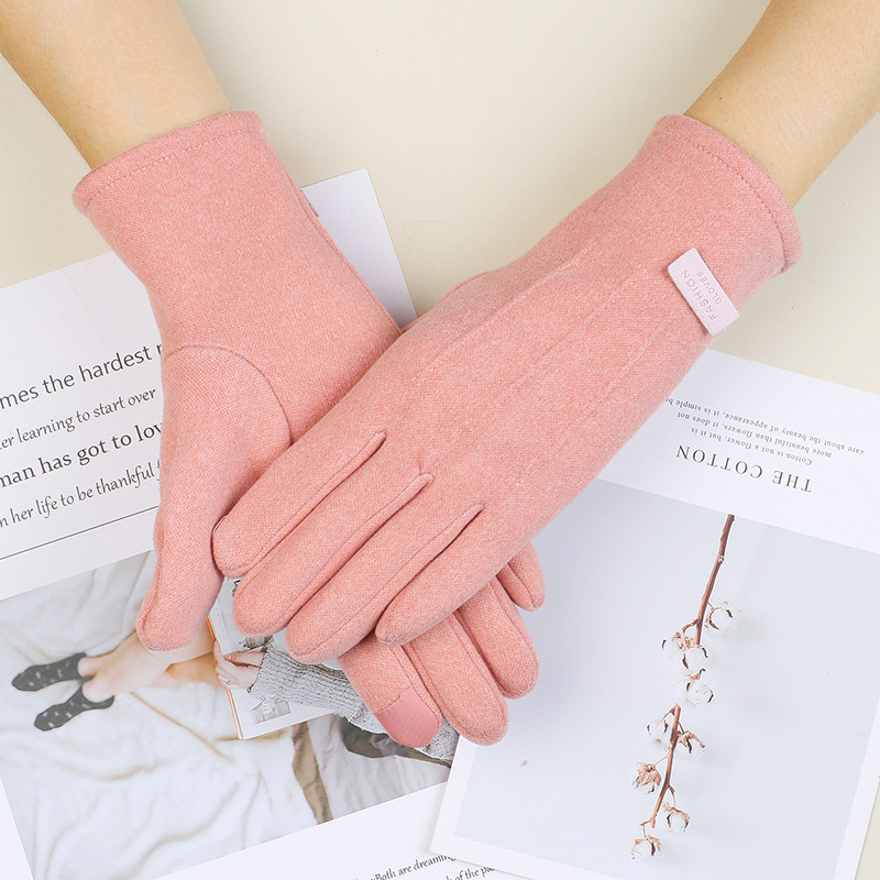 Sarung tangan hangat musim gugur dan musim dingin wanita, sarung tangan hangat kelinci beludru garis bulu pita luar ruangan mengemudi bersepeda olahraga layar sentuh lucu