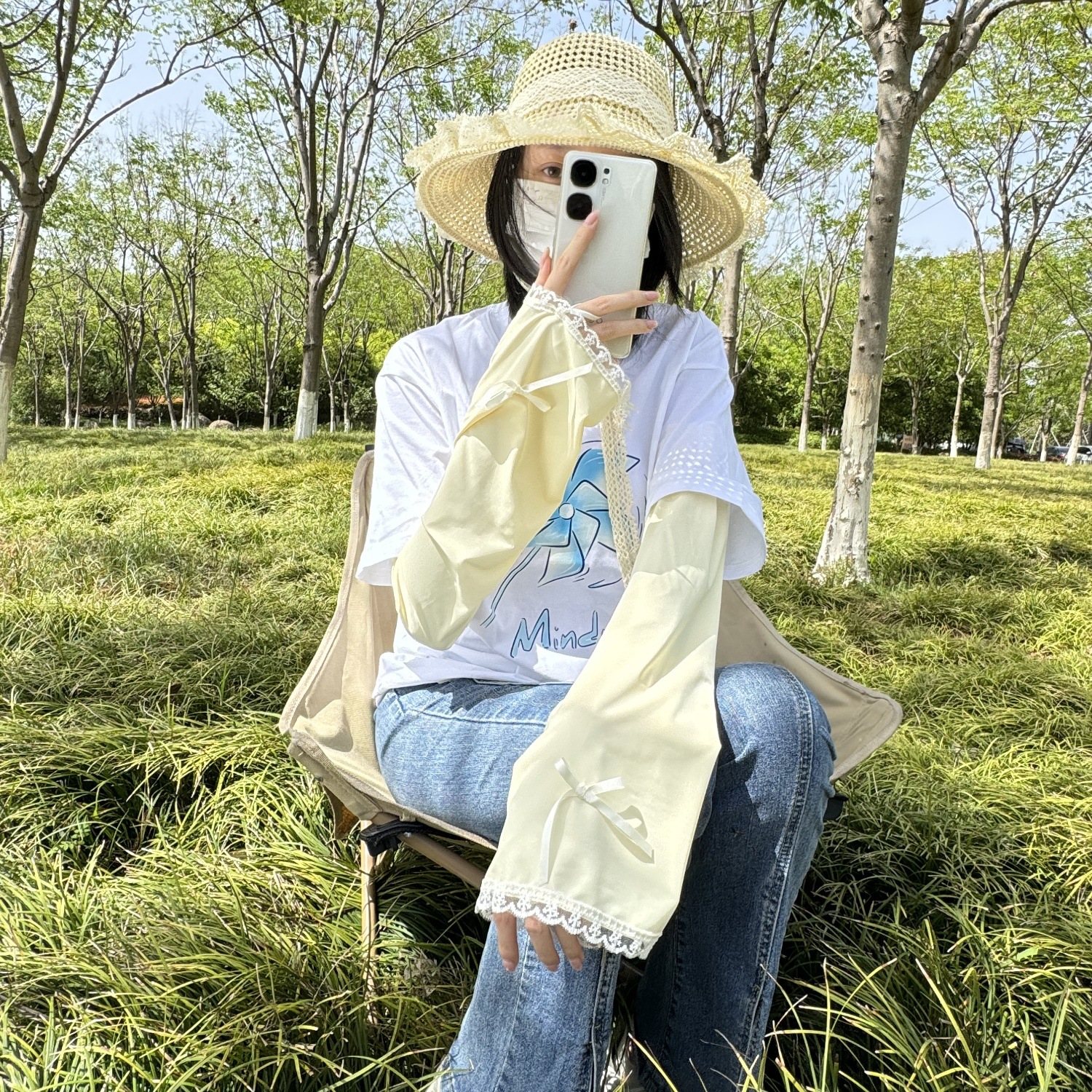 Manset Pelindung Terik Matahari Mulut Besar Longgar Warna Polos Dekorasi Renda Berenda Manset Wanita Gaya Korea Musim Panas Model Baru Bersepeda