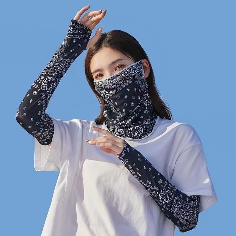 Masker pelindung matahari penuh pria dan wanita, penutup muka gantung leher terintegrasi kerah es lengan selebriti Internet musim panas