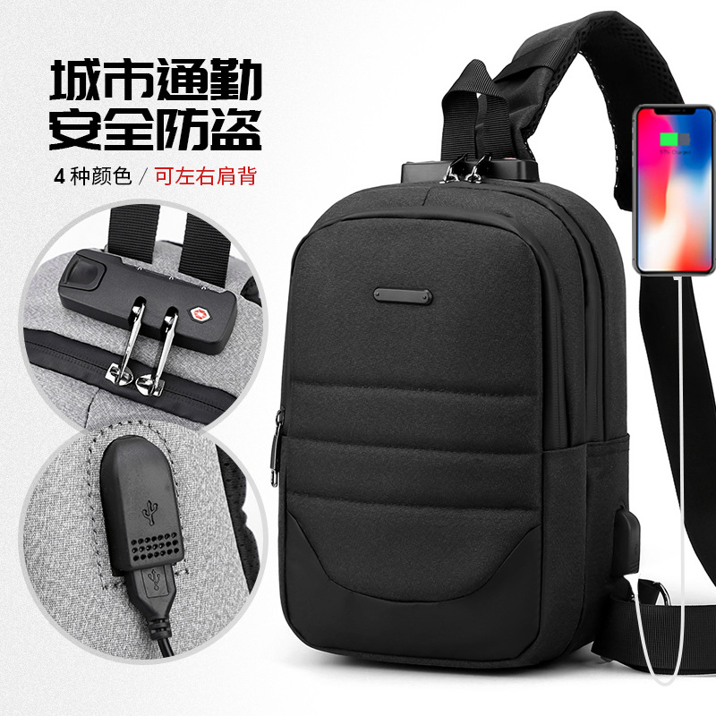 Tas dada usb kunci kata sandi pria, tas selempang ransel kecil bisnis bersepeda multifungsi olahraga luar ruangan