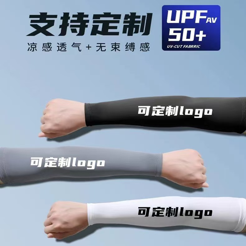 Sarung Lengan Sutra Es Kustom Lengan Es Anti Matahari Musim Panas Pria Wanita Olahraga Luar Ruangan Berkendara Rasa Es Custom Cetak Panas Lengan Es LOGO